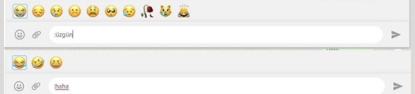 Normal metin kutusundayken, iki nokta üst üste ( Shift +; /: Tuş) ve ardından ifade etmek istediğiniz ifadenin ilk iki harfini yazın. Yazdığınız her harfle değişen eşleşen bir emojileri göreceksiniz.