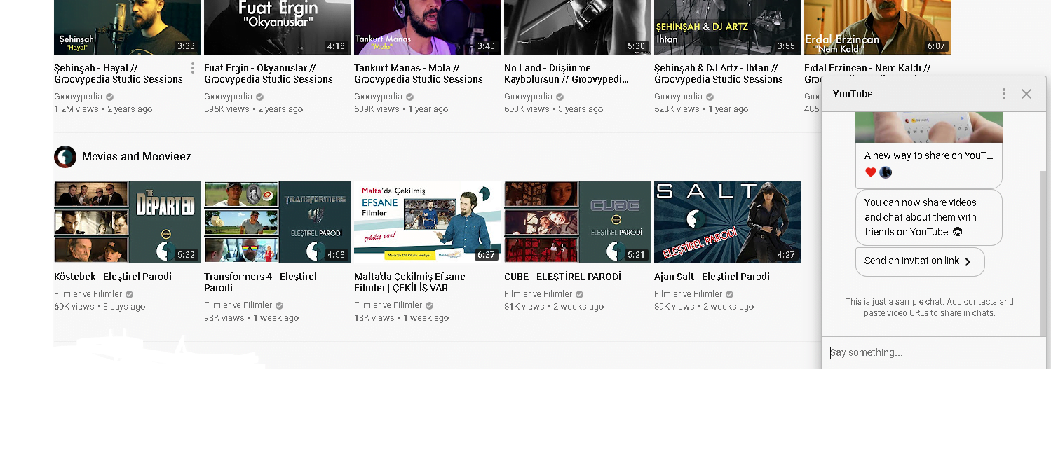 Google ürünlerinde henüz en üst düzeyde mesajlaşmaya ulaşmadığımızdan, YouTube artık yalnızca mobil cihazlara yönelik mesajlaşma özelliğini web’e de taşıyor. Şimdi, Google hesabınıza giriş yaptığınızda ve YouTube.com’a göz atarken, videolar hakkında arkadaşlarınızla paylaşıp YouTube platformu üzerinden konuşabilirsiniz. Sağ üst köşedeki bildirimler zilinin yanındaki sohbet balonu simgesinden sohbete erişebilirsiniz. Sohbet geçmişleri, ekranın sol alt köşesinde açılır ve… Okumaya devam et YouTube mesajlaşma özelliğini web’e taşıyor!