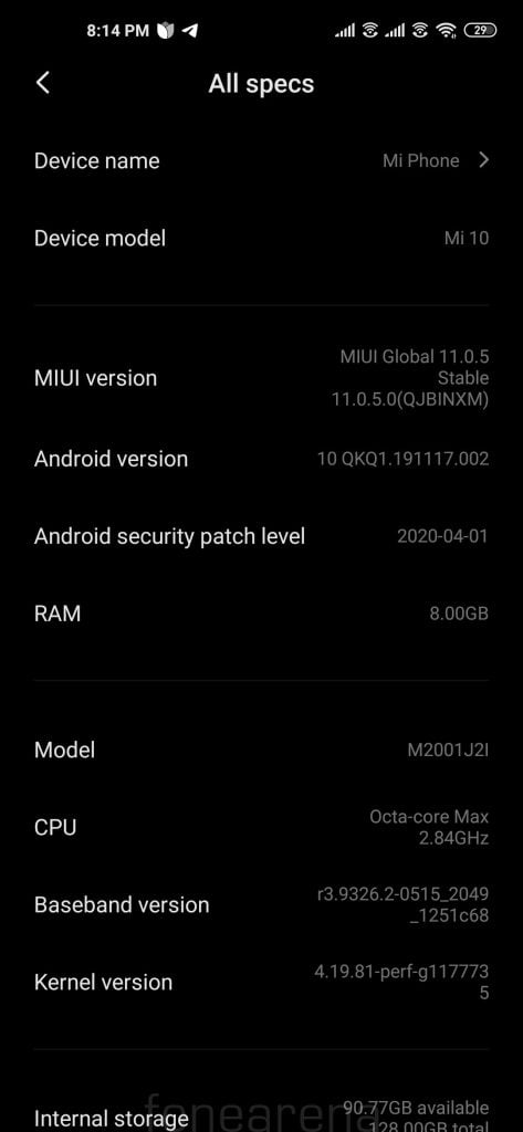 Mi 10 MIUI şu ana kadar aldığı güncellemeler:
